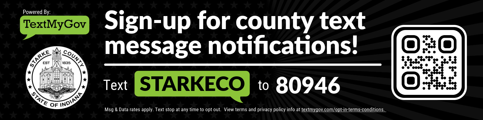 You can opt out of Starke County TextMyGov alerts at any time by texting STOP to 80946.